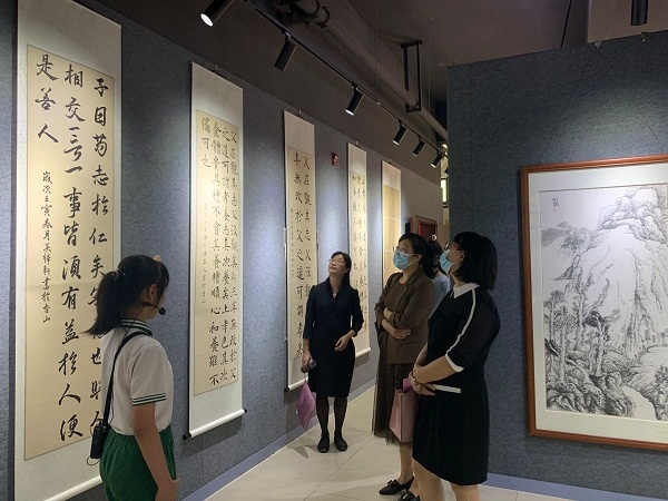 督導專家來到學校后,在梁育波老師的帶領下首先參觀了學校的書畫展廳,接著聆聽了黃思斯老師的中華優(yōu)秀傳統(tǒng)文化課例《飲湖上初晴后雨》。然后集中教師會議室,聽取李煥儀主任作中華優(yōu)秀傳統(tǒng)文化教育實驗學校督導工作匯報。李煥儀從學校實際出發(fā),整合學校相關工作,從整體規(guī)劃、校園文化、課程建設、師資隊伍、課題研究、條件保障、取得成果等多方面匯報學校工作。