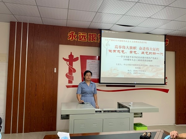 8月17日上午,湖洲小學(xué)教師會(huì)議室里正在舉行湖小黨支部八月份主題黨日活動(dòng)(學(xué)習(xí)貫徹習(xí)近平七一講話(huà)精神專(zhuān)題宣講活動(dòng)),活動(dòng)由黨支部書(shū)記李杰華主持,全體支部成員參加了本次活動(dòng)。