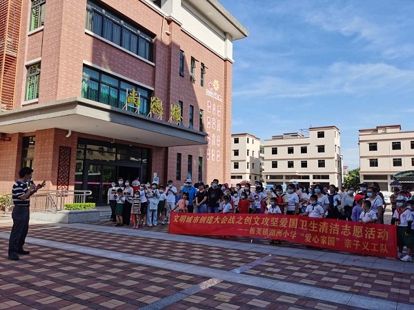在教師、家長志愿者們的共同努力下,湖洲小學通過多次的創文攻堅志愿活動,對校門口周圍、雅芙花園前等街道進行了清掃,清理多年積存大塊垃圾,積極創造整潔文明的生活環境,同時也在板芙大橋西至四海家具廠門口路段、墟鎮等范圍開展“隨手撿、隨手拍、隨手鏟、隨手拍”活動,沿途清除街道窄巷內的衛生黑點,并派發創文宣傳單張,積極開展創文宣傳。8月26日,志愿者們對湖洲小學校園內環境以及課室等進行了細致的清潔,將愛國衛生運動和創文攻堅活動在校園中落實到位,同時也為新學期開學做好了充分的衛生準備。