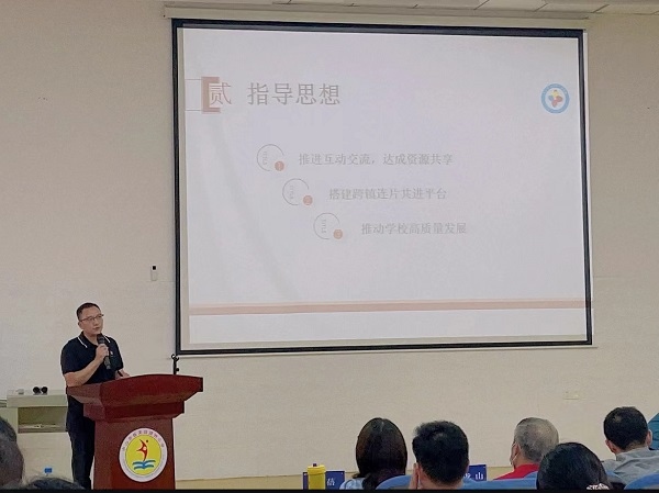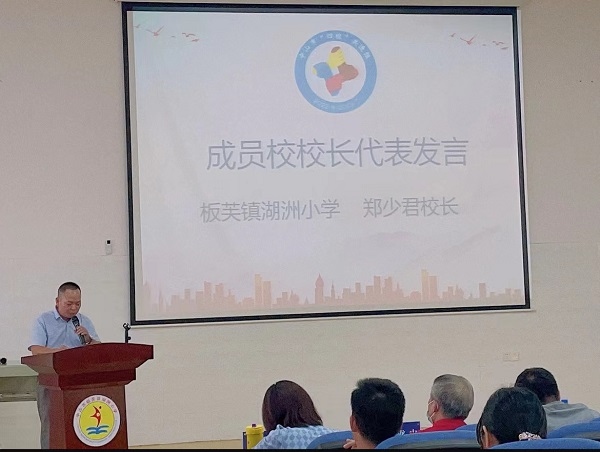 儀式上,板芙鎮教師綜合素養培育基地主任、教體中心教研員張運生代表板芙鎮教體中心感謝領導專家和兄弟鎮區多年來對板芙教育的支持和幫助,他希望四所學校加強交流合作,搭建平臺,整合資源,聯通教研,實現教師成長共進,進一步提高四校的教育教學管理水平。三鄉鎮載德小學毛義祥校長就四校共進方案進行了簡明扼要的解讀。板芙鎮湖洲小學鄭少君校長作為成員校校長代表發言。他提出通過四校的交流與合作,構建橫向交流合作、縱向學習溝通的立體教研體系的美好愿景。三角鎮中心小學陳平芳副校長、沙溪鎮龍瑞小學鄧卡麗老師分別作為成員校行政代表和成員校骨干教師代表發言。
