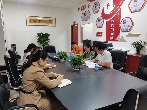 學校孫竹蓮副校長就學校規范辦學、課后延時服務、提質增效三方面工作向督導組進行詳細匯報。隨后,督導組在孫竹蓮副校長和羅少娜主任的陪同下巡視校園,對湖小執行常規教學、布置批改學生作業、開展大課間及落實六項管理等工作進行全面督查。督導組在會議室仔細翻閱了湖小“雙減”及六項管理工作材料,在與湖小行政交流中進一步深入督查“雙減”和六項管理工作。