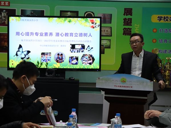 板芙鎮深灣小學曹勇軍校長以《用心提升專業素養 潛心教育立德樹人》為題,對學校一年以來的教育教學工作做了全方位、多角度的匯報。在學校負責老師的指引下,評估小組分別查看了校園文化、大課間活動、社團活動和學生素質展示。無論是悠揚的笛聲,還是靈動的武術,都使評估小組成員們留下深刻印象,他們對學校豐富多彩的素質教育活動給予了充分肯定,學生們陽光活力的精神風貌贏得專家的陣陣掌聲。