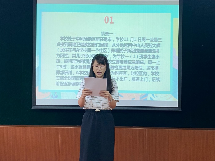 本次桌面推演主要模擬“學生同住人或學生為新冠密切接觸者”時的應急處置。演練安排前期處置、應急啟動、全面應對和心理疏導、輿情管理4個場景。通過數十個問題現場問答的方式,對學校新冠肺炎疫情應對能力開展全方位的檢驗。