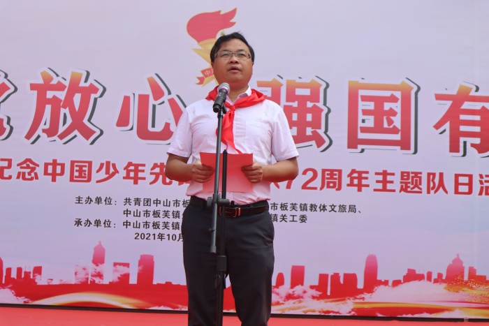 本次活動以“請黨放心 強國有我”為主題,由板芙鎮團委、板芙鎮教體文旅局、鎮少工委、鎮關工委主辦。板芙鎮黨委副書記張偉鵬,團市委學校部部長李昀蔚,副鎮長候選人肖嘉露,教體文旅局局長盧金軻,鎮團委書記、少工委主任許瑞芳,關工委副主任梁炳軒,關工委委員黃北勝,教育和體育事務中心魏先海,新聯小學黨支部書記、少工委主任鄭少君,鎮團委副書記、少先隊總輔導員李小敏,板芙鎮各兄弟學校的大隊輔導員們、各校獲獎的中隊輔導員代表、少先隊員代表及新聯小學全體師生參加活動。