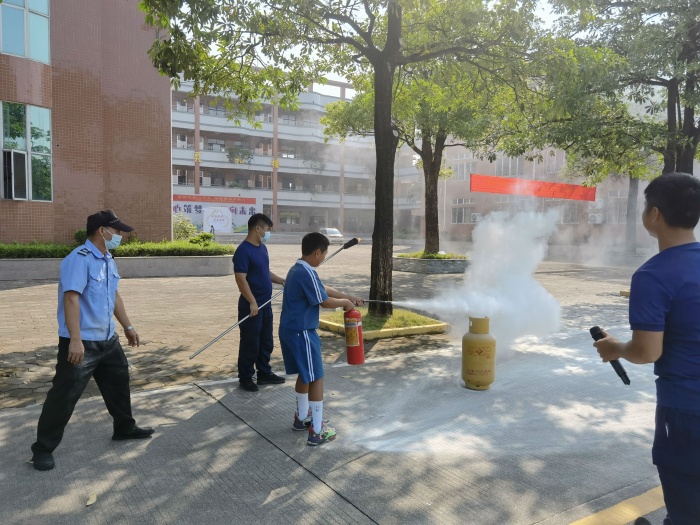 隨后,板芙鎮消防大隊的指導員盧楚展向全校師生講解了火災中應該如何報警、疏散、逃生、自救等知識。并向全體師生詳細講解了滅火原理、滅火方法和常用滅火器材使用等常識。消防指導員林志城和李桂平現場講解干粉滅火器的操作技巧,向全體師生示范使用方法。學校保安、老師、學生和食堂工作人員也體驗了滅火器的使用,將剛剛學到的知識運用到實踐當中。