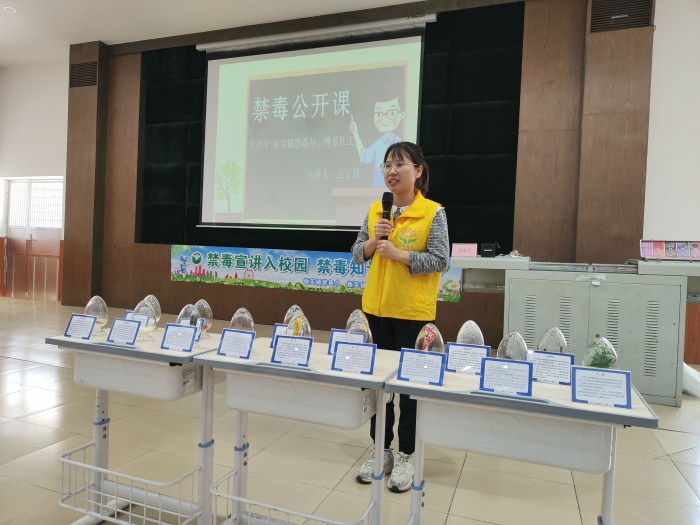 活動中,禁毒宣傳團隊給學生發放了禁毒宣傳知識小冊,并帶來各類毒品的展示樣品。占文倩向教師及學生仔細介紹了毒品的特點及危害,告誡大家要遠離毒品、珍愛生命,同學們也紛紛表示愿意加入禁毒志愿者的行列。