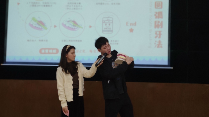活動伊始,新聯(lián)小學(xué)校長吳肇葵感謝板芙鎮(zhèn)相關(guān)部門為學(xué)校師生帶來知識講座。他結(jié)合自身成長經(jīng)歷告訴學(xué)生口腔保護(hù)以及毒品預(yù)防的重要性,提醒學(xué)生在講座中要認(rèn)真傾聽。板芙醫(yī)院口腔科醫(yī)生羅睿用通俗易懂的語言為同學(xué)們科普了豐富有趣的口腔健康知識。他從口腔存在的普遍問題,窩溝齲的發(fā)展過程及口腔保健等多方面詳細(xì)闡述了口腔保健的重要性,并強(qiáng)調(diào)生活中要養(yǎng)成早晚刷牙、飯后漱口等良好的好習(xí)慣。然后,他還通過圖文和實物模型結(jié)合的形式為孩子演示正確的刷牙方式,同學(xué)們聽得津津有味,跟著羅睿醫(yī)生的步驟逐步學(xué)習(xí)正確、科學(xué)的刷牙方式。
