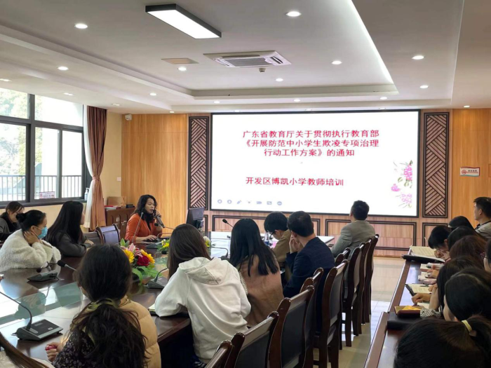 為有效預防校園欺凌事件,維護學生身心健康,保障學校安全,12月13日下午,開發(fā)區(qū)博凱小學召開了“預防校園欺凌,共建和諧校園”專題培訓會。