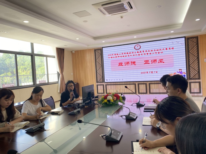會上,謝少聲副校長帶領全體教師學習《中山市中小學有償補課和教師違規收受禮品禮金問題專項整治實施方案》和《中山市師德師風建設三年行動計劃》,從“師德”、“廉潔”兩個角度出發,提醒全校教師要愛崗敬業,以德育人,以身為范做學生的表率,要廉潔從教,以一顆愛心、滿腔熱情堅守教育事業,落實立德樹人的根本任務,做新時代“四有”好教師。