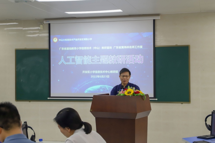 荷風送香氣,竹露滴清響。為研讀新課標,研討新教材,研究新方向,提升信息技術學科教師專業素養,推動各學校積極探索學科課改新模式,2022年6月23日,開發區小學信息技術中心教研組在博凱小學承辦了中山市小學信息技術新教材研訓暨廣東省基礎教育小學信息技術(中山)教研基地暨黃偉祥名師工作室人工智能主題教研活動。