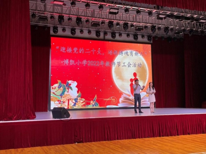 2022年9月8日晚上,在博凱小學(xué)黨支部的領(lǐng)導(dǎo)下,學(xué)校工會(huì)以“迎接黨的二十大,培根鑄魂育新人”為主題開展了一場別出心裁的工會(huì)活動(dòng),為辛勤工作的老師們獻(xiàn)上真摯的祝福。