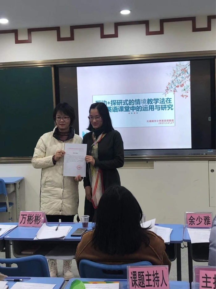 最后,大涌嵐田小學萬彬彬主任為課題負責人頒發立項證書,為本次兩個課題的開題報告會畫下圓滿的句號。相信在各位專家的指導下,在學校領導的關心幫助下,全體課題組成員一定會克服困難,在課題研究中收獲碩果。