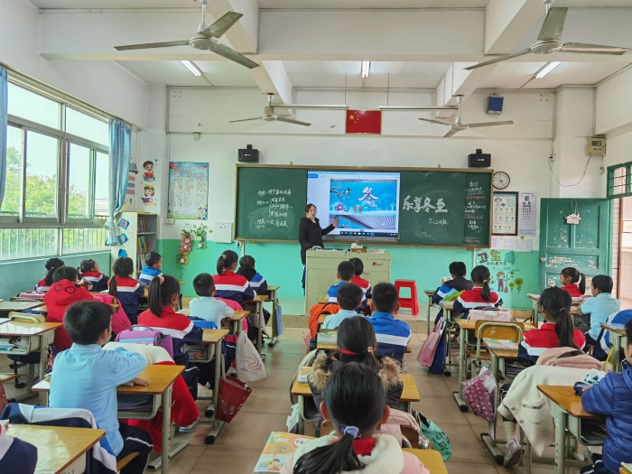 除此之外,大涌南文小學還在冬至日當天早上開展了班會課。孩子們在老師的講解聲中了解到冬至的來源、習俗和意義。