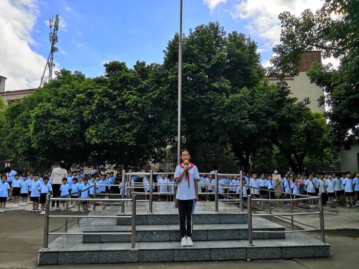 接著,校長跟全校師生一起學習了習近平總書記在慶祝中國共產黨成立100周年大會上的講話精神,他激勵學生在日常生活中多學習黨史,爭取做一個優秀的少先隊員。