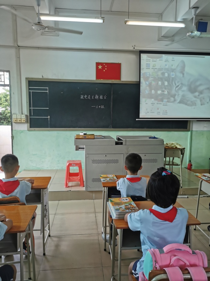 最后,各班同學回到教室,由班主任組織開展新學期第一節主題班隊課,一起觀看開學安全第一課直播。班主任老師按照本班學生實際對學生進行愛國主義教育、安全教育、禁毒教育和消防安全教育。其中,老師和同學一起重點進行了跟黨走主題學習,號召全體同學“聽黨話、學黨史、跟黨走”。