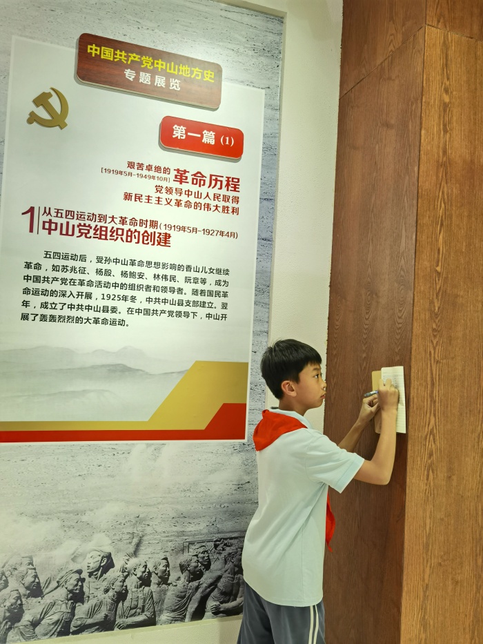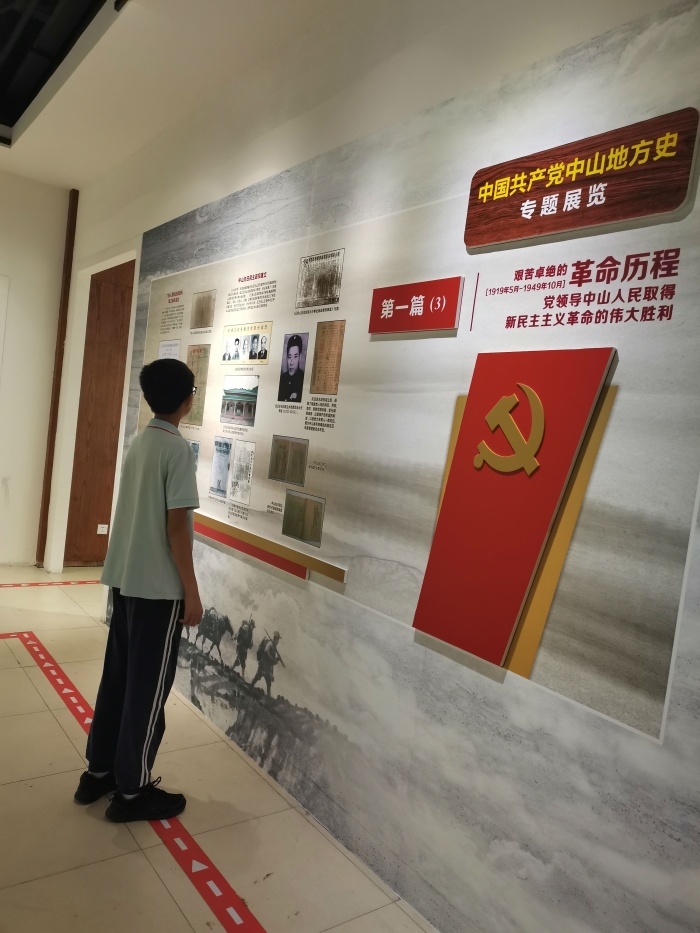 看!學生們在紅博城參觀中國共產黨中山地方史專題展覽。紅博城黨史館以“崢嶸歲月展輝煌,五桂大地謀新篇”為展覽主題,劃分了艱苦卓絕的革命歲月、曲折前進的社會主義建設探索、走向輝煌的改革開放3個篇章。其中,同學們了解到了中山是廣東省較早成立黨組織的地方之一,從“五四運動”的斗爭風云到中山黨組織的創建,從抗日戰爭的槍林彈雨到共和國成立后的艱難跋涉,從曲折的辛勤耕耘到“文明城市”創建,中山人民浴血奮戰、攻堅克難,譜寫了一曲曲激動人心的時代樂章。正是一批批先驅在黑暗中前行,才為苦難的人民帶來了希望,才有了今天的幸福生活。家長和學生們紛紛表示:“沒有共產黨、沒有革命烈士就沒有今天我們美好的生活呀!”