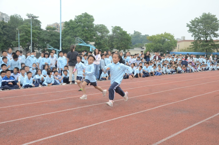 看,跳繩比賽中,健兒們的每次擺動像離弦的弓箭,氣勢洶涌,銳不可當。田徑類比賽上,運動健兒們在50米、200米項目上用迅猛的速度展現了一幕又一幕的精彩瞬間。在場的學生都被這種拼搏的精神深深地吸引了,他們呼喊著,喝彩著,氣氛十分熱烈。半天的時間很短,不足以揮灑激情,展示活力。但比賽中學生們學到了許多:頑強拼搏的可貴、團隊之間的信任、團結的重要性。