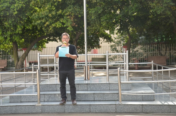 首先,大涌南文小學(xué)利用升旗儀式的時間,由大隊輔導(dǎo)員王利勇老師向全校師生發(fā)起倡議:抵制毒品,人人有責(zé)。接著,王老師帶領(lǐng)全校師生進行禁毒宣誓。每位同學(xué)在國旗下莊嚴宣誓,必會自覺抵制毒品,做到不吸毒,不販毒。