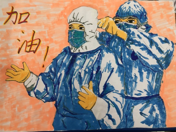 孩子們將自己的想法在畫紙上渲染,一幅幅充滿感情和語言的畫卷應運而生。有孩子畫下了白衣天使在烈火中與病毒搏斗的場面,身后的“武漢加油”字樣更是雄渾有力;也有孩子在畫紙上畫著鐘南山、李蘭娟等抗疫英雄以及巍然屹立的火神山醫院,畫上的“逆行者加油”同樣浸入了小畫家飽滿而真摯的感情;還有孩子通過開窗通風、佩戴口罩、洗手消毒等繪畫元素的巧妙融合,表達了自己對本次疫情更深層次的思考,傳達了疫情防控的基本措施。