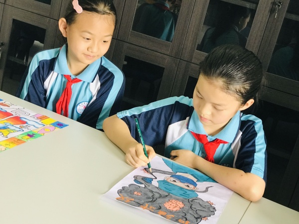 上午,拿到畫紙的孩子們激動不已,馬上著手準備。孩子們熱情高漲,都想用自己的行動表達對抗疫英雄的敬愛和對本次疫情的深入思考及個人感受。