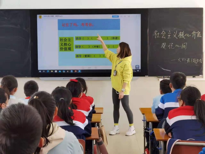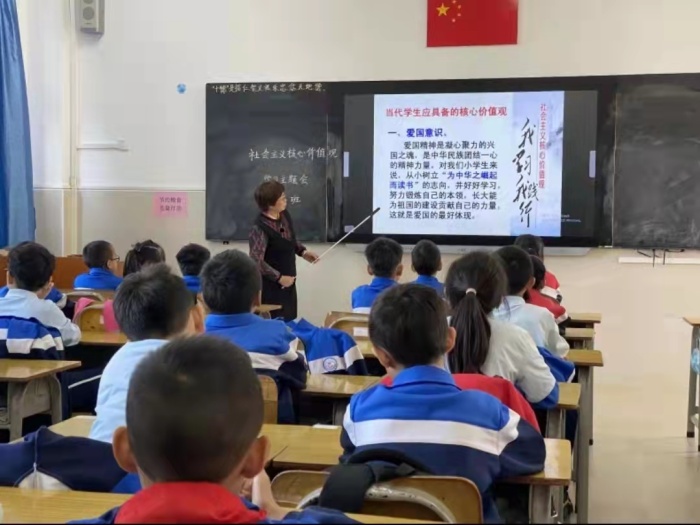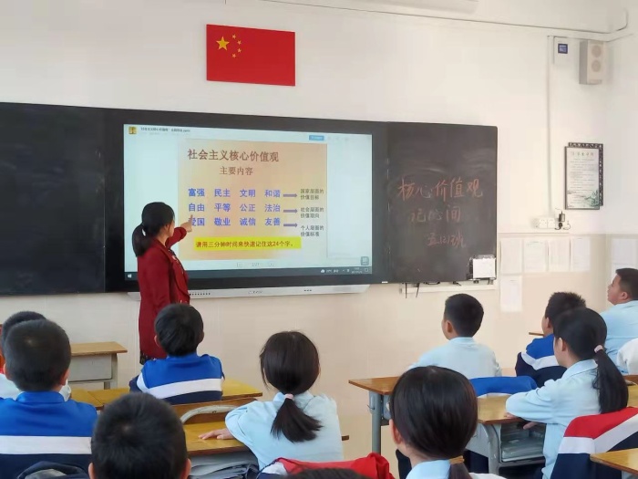召開主題班隊課。各班班主任利用班隊課,組織學(xué)生認(rèn)真學(xué)習(xí)社會主義核心價值觀,向?qū)W生逐一講解了“富強(qiáng)、民主、文明、和諧,自由、平等、公正、法治,愛國、敬業(yè)、誠信、友善”24字社會主義核心價值觀的具體內(nèi)涵,倡導(dǎo)學(xué)生從我做起,從身邊小事做起,培育和踐行社會主義核心價值觀。