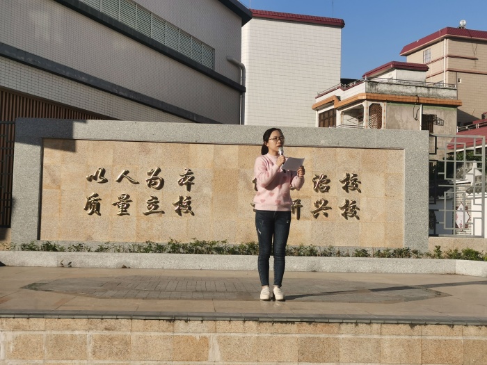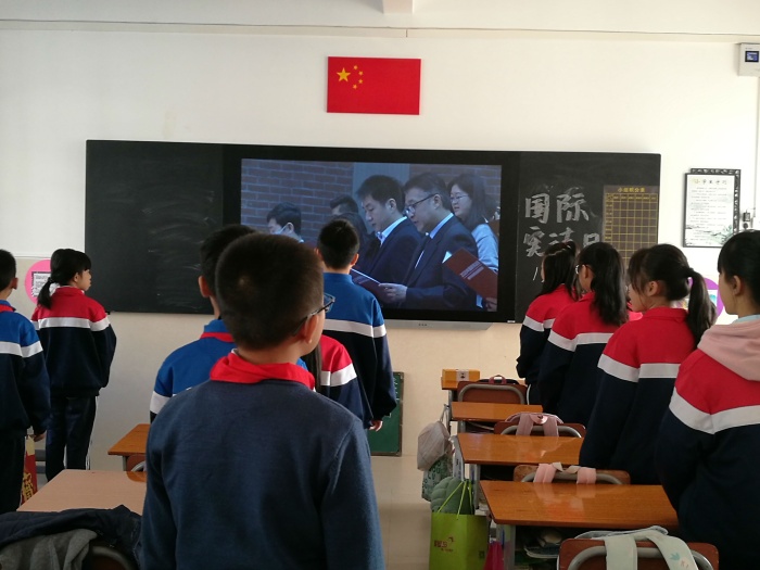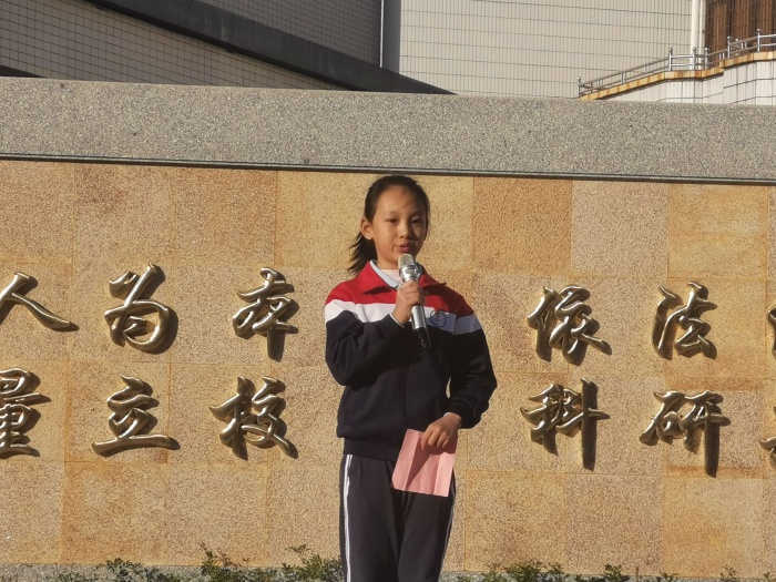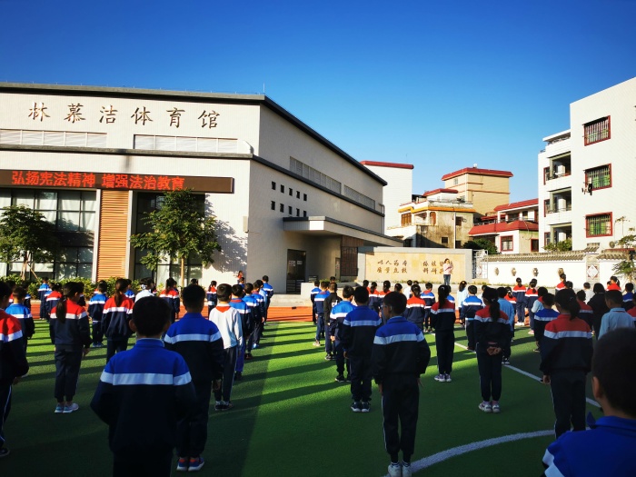 舉行升國旗儀式及國旗下講話活動。在莊嚴(yán)的升旗儀式上,四(2)班的李佳樂同學(xué)作了主題為《憲法在我心中》的國旗下講話。隨后,伍影梨主任也作了發(fā)言,她呼吁全校師生要樹立憲法意識,增強(qiáng)憲法觀念,做知法守法的好公民。
