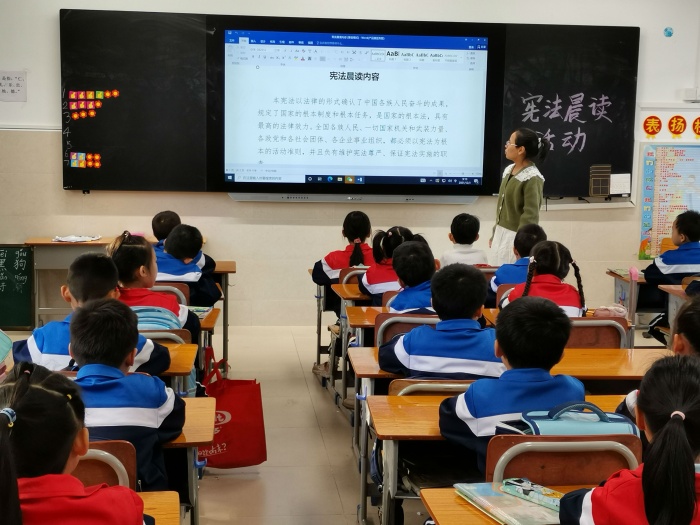 開展憲法晨讀活動。學(xué)校組織全校師生觀看了教育部在北京舉辦的“憲法晨讀”活動網(wǎng)絡(luò)直播,隨后同步開展“憲法晨讀”活動。通過晨讀憲法的形式,讓學(xué)生感受了憲法的崇高和莊嚴(yán),進(jìn)而培養(yǎng)學(xué)生對憲法的認(rèn)同和尊重。