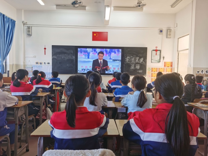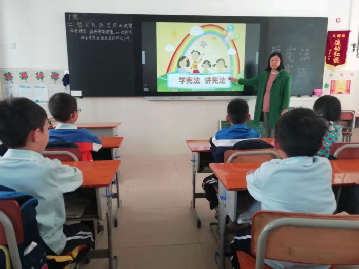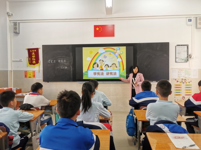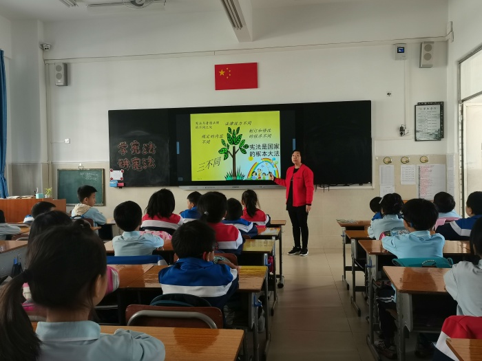 開展憲法專題課。憲法專題課“學(xué)憲法 講憲法”由各班道法老師組織開展。在專題課上,老師向?qū)W生講解了憲法的重要意義,并引導(dǎo)學(xué)生要認(rèn)真學(xué)習(xí)憲法,努力做一個尊法、學(xué)法、守法、用法的小公民。