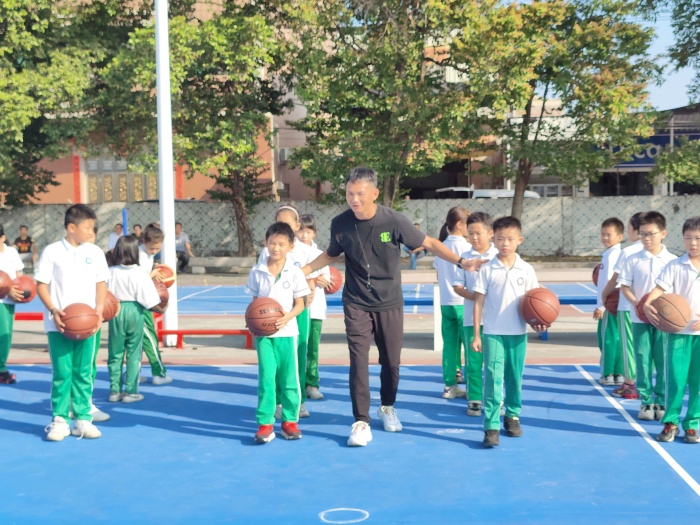 安堂小學黃昆明老師在籃球場上給龍港小學的學生們上了一節精彩的籃球訓練課。黃老師將如何運球,如何控球的方法給孩子們作了細致的講解,并通過老師的動作示范。課上,孩子們學習興致極高,很快就學會了老師所教授的運球技巧。
