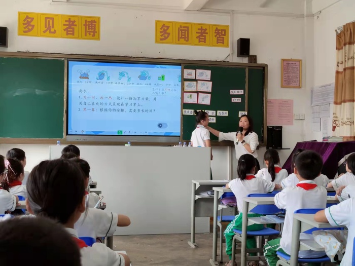 梁滿枝老師展示的是四年級數學上冊《合理安排時間》,梁老師從學生生活實際出發,以微視頻引入并提出問題,圍繞著學習單讓學生獨立自主地設計沏茶方案、展示方案,老師以輕松、幽默的語言引導學生在不斷的探索、比較、思考中總結出最優的方案,從而很好地完成教學目標,突破重難點。充分體現了“老師為主導,學生為主體”的教學模式,尊重學生的個性發展,得到在場老師的高度肯定和一致好評!