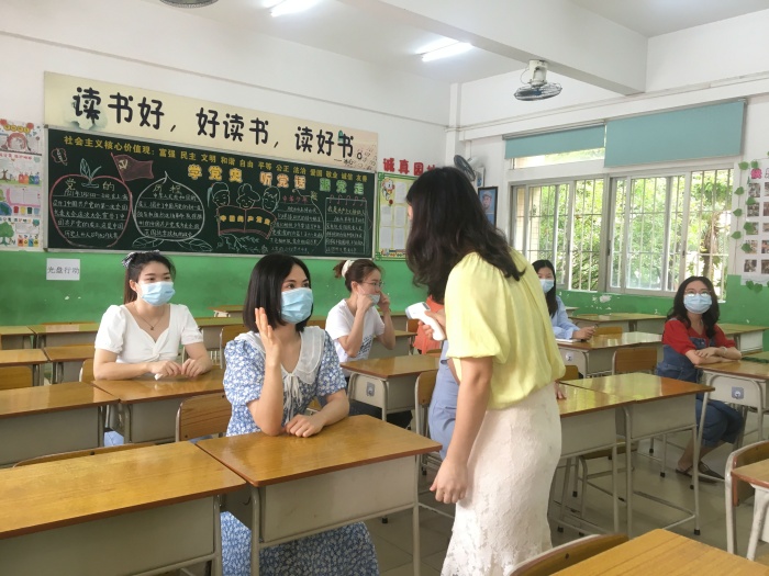 場景二設置在課室。課室是學生上課的主要密集場所,在課室按要求配備體溫探測器、消毒液等防控物資。課室演練內容設定為學生在課室上課期間,出現發燒情況。在課室演練上課期間,學生舉手報告自己不舒服。按照防疫流程詢問,老師及時給學生測量體溫,把學生帶到臨時觀察區。同時,老師通過疏散通道立即把班上其他同學帶到備用課室,進行體溫檢測。在隔離觀察室,班主任老師對學生進一步檢查、詢問近14天有無疫區旅居史、接觸史等,再聯系家長將學生帶離學校,由家長帶到就近就醫,同時,班主任第一時間上報學校防疫工作小組領導,并做好登記。學校防疫工作小組通知學校后勤人員對體溫檢測異常人員所在班級進行全面消毒,清潔人員30分鐘后用清水擦干凈。