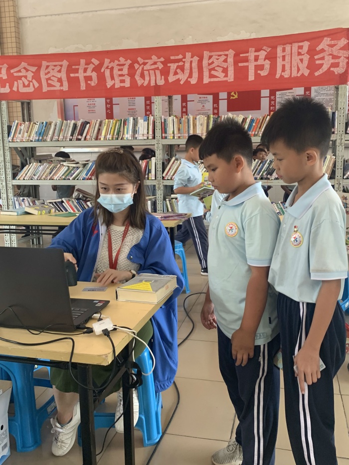 中山紀念圖書館人員為學生精心準備了2000多本書籍,書目繁多,涵蓋了社會科學、兒童文學、故事繪本、歷史政治等類別,滿足了學生廣泛的閱讀需求。中山紀念圖書館人員還為學生提供了現場借書服務,讓孩子足不出戶就能夠借到圖書,大大方便了廣大學生。同時活動中借閱的書籍可以通過大涌圖書館進行歸還,便利于民。