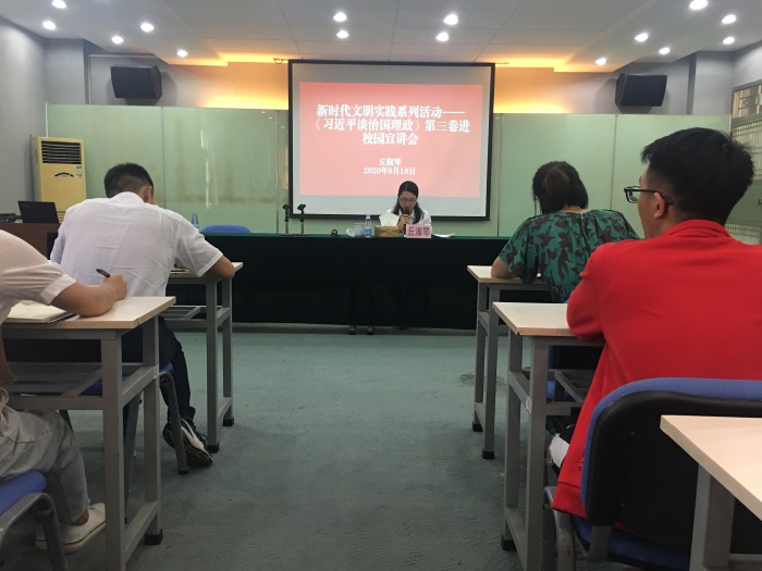 9月23日下午,“新時(shí)代文明實(shí)踐系列活動(dòng)——《習(xí)近平談治國理政》第三卷進(jìn)校園”宣講會(huì)在旗北小學(xué)四樓電教室開展。大涌鎮(zhèn)黨委委員丘淑琴同志為旗北小學(xué)全體教師帶來了一場《愛國主義教育暨意識形態(tài)》的專題講座。