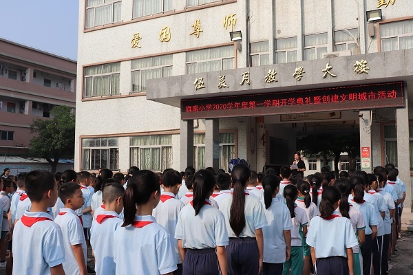 新學(xué)期,新挑戰(zhàn),新希望。9月1日上午,清爽的秋風(fēng)迎面撲來,旗南小學(xué)全體師生歡聚在操場,參加2020學(xué)年第一學(xué)期開學(xué)典禮。伴著振奮人心的國歌聲,鮮艷的五星紅旗冉冉升起,開學(xué)典禮拉開帷幕,在冉冉升起的國旗寄托了全體師生對旗南小學(xué)未來的美好憧憬與祝愿。