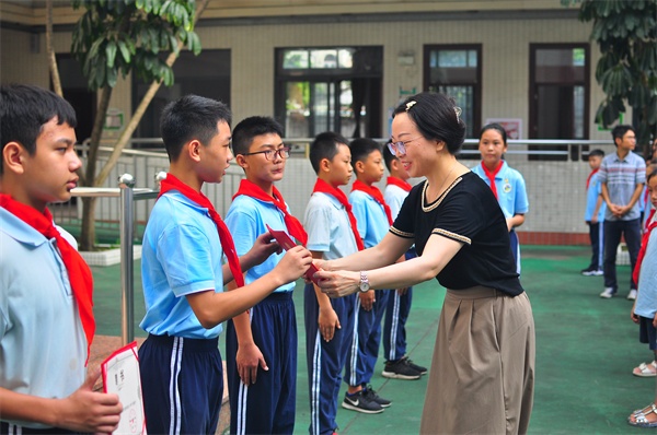 李嬌艷校長親切地為護(hù)旗手與升旗手頒發(fā)聘書,希望他們能嚴(yán)格要求自己,按時(shí)到崗,牢記使命。隨后,李校長面向全校同學(xué),宣講了習(xí)近平總書記“七一”講話重要精神,囑咐全體師生要牢記初心使命,堅(jiān)定理想信念,大家共同攜手,一定能描繪出嵐小美好的未來。