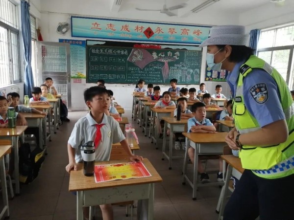 交警大隊郭警官則從交通安全方面作了教育。郭警官用通俗易懂的語言,向同學們講解了在假期出行中應該怎樣過馬路、怎樣乘坐交通工具、怎樣避免交通事故的發生等交通安全常識,要求全體師生進一步增強安全意識,提高自我保護能力。同時通過“小手牽大手”活動,把安全出行的知識、文明交通的理念帶到每一個家庭。