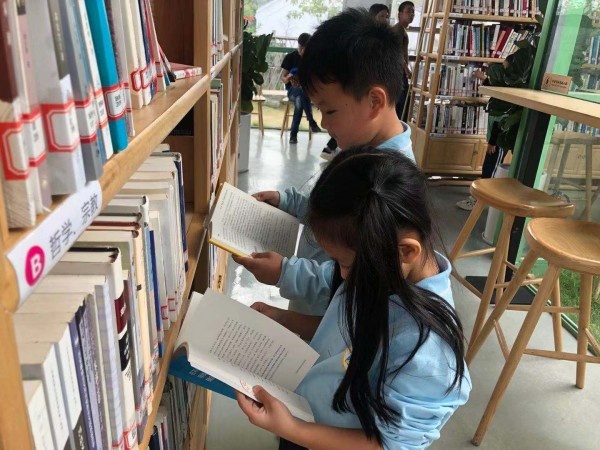 遠處,一座鮮綠色框架的玻璃屋靜立在金黃的稻田旁,那就是左步書屋。同學們在這里開展了一次親子閱讀會。書架前那一個個選書的小身影,窗臺前那一雙雙專注的小眼神,成了最溫馨的畫面。那或抱或靠的輕聲誦讀,那或坐或站的捧書共品,都是一道道親子共讀的美麗風景。
