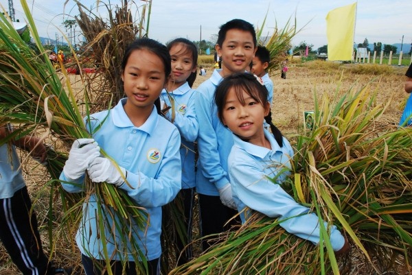 清晨,嵐田小學全體教師和部分親子家庭帶著歡聲笑語,踏著輕快的腳步,走進南朗鎮左步村,空氣中彌漫著稻谷的清香和泥土的芬芳,讓人心曠神怡。穿過村莊,一片金黃的稻田呈現在眼前,同學們不約而同地連聲贊嘆:“好美??!” 在家長們的帶領下,同學們拿著鐮刀走進稻谷叢中。認真聆聽了農民伯伯介紹割稻谷的方法后,同學們從容地與稻子“切磋”起來,左手抓住一把稻桿,右手用鐮刀在稻桿根部來回切割,切身體會到了“粒粒皆辛苦”。不少同學還嘗試了用打谷機打稻谷,在田間忙得不亦樂乎,喜氣洋洋的秋收畫面真是美不勝收。