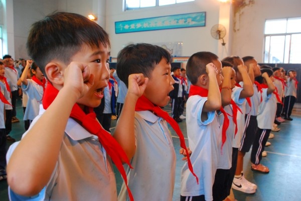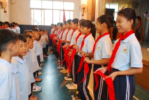 宣誓儀式后,嵐田小學李嬌艷校長為新成立的中隊頒發隊旗,少先隊員代表為輔導員佩戴紅領巾。李校長代表嵐田小學全體師生為新隊員們送上真摯的祝福,同時對全體少先隊員們提出殷切的希望,希望新隊員們要努力學好文化知識,用優秀少先隊員的標準嚴格要求自己,從小養成良好的學習、生活和品行習慣,把自己鍛煉成為有理想、有道德,有文化、有紀律的優秀少年。