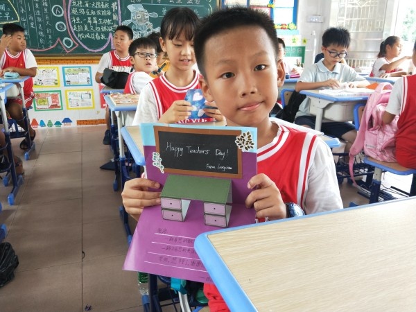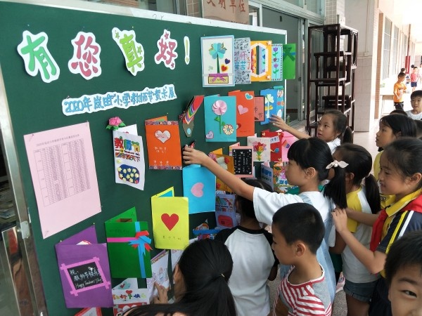 榮譽(yù)室門(mén)前,同學(xué)們精心制作的“賀卡墻”為教師節(jié)增添了色彩。一張張五彩斑斕的賀卡,一幅幅生動(dòng)逼真的圖案,一句句想對(duì)老師說(shuō)的心理話,充分發(fā)揮了兒童的奇妙想象,展現(xiàn)了孩子們對(duì)老師崇高的敬意,一筆一畫(huà),將真誠(chéng)的情誼全部融進(jìn)了小小的卡片里。