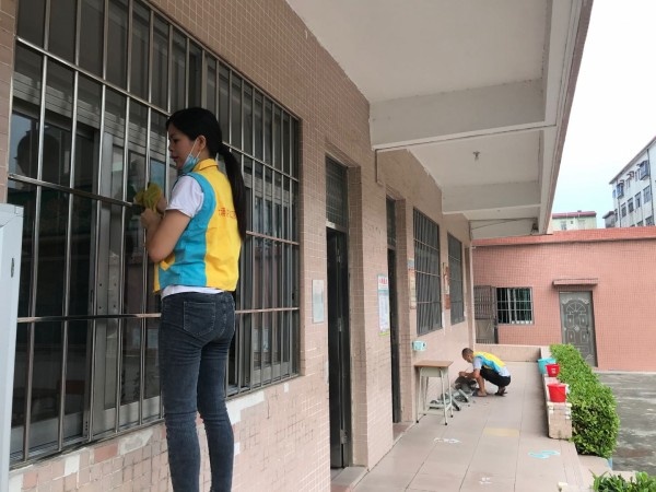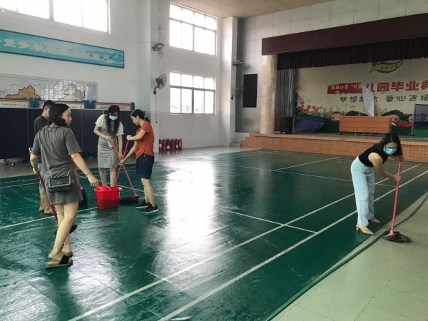 炎炎烈日,卻抵擋不住嵐田小學親子志愿服務隊的工作熱情。下午4點,志愿者們進入校園,冒著酷熱,卷起袖口,不怕臟、不怕累,熱火朝天地勞動起來。有的手拿垃圾袋清理綠化帶,有的拎起水桶擦洗桌椅,有的拿起掃帚拖把清潔地板……大家積極熱情地投身到清潔校園的志愿服務活動中,一個個忙碌的身影成為了校園里一道亮麗的風景線。