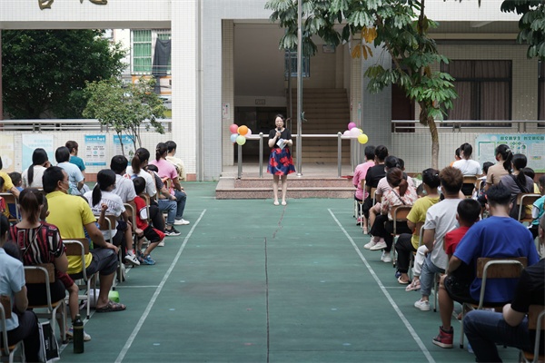 九點,培訓拉開帷幕。第一部分為集中培訓,新生與家長們齊聚國旗下,聆聽李嬌艷校長的家庭教育培訓講話。會上,李校長感謝家長們在百忙之中抽空來參加一年級培訓會,贊揚家長們對孩子成長的關心與重視。她以風趣幽默的語言,別開生面地分享了對于教育的理解,指出家長作為孩子的導航員與終身教師,要樹立正確的教育觀念,采用科學的教養方式,堅持終身學習,以身作則,營造和諧的成長環境。
