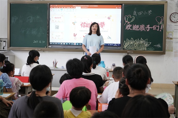 集中培訓結束,新生與家長們便移步一年級教室,進行分班培訓。一年級班主任們詳細介紹了學校的基本情況,并從學生的身心特點,建議家長幫助孩子做好入學的心理準備、知識準備和物質準備。班主任還積極引導家長行動起來,擔負起第一任老師的職責,用小事培養孩子各種好習慣,加強家校溝通,為孩子營造幸福成長的空間。