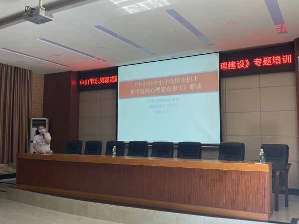 春深四月去,夏來五月新。微風不燥,陽光正好。為充分做好2020年春學期師生疫情下復學返校準備工作,進一步營造校園寬松氛圍,幫助師生更好地適應校園生活,5月5日上午,學校要求衛生健康副校長王永東、中山市東鳳人民醫院心理專家傅曉蓉副主任醫師蒞臨新徽學校為第二、第三批復學的全體教師作《中小學疫情下返校復學心理建設》專題培訓。