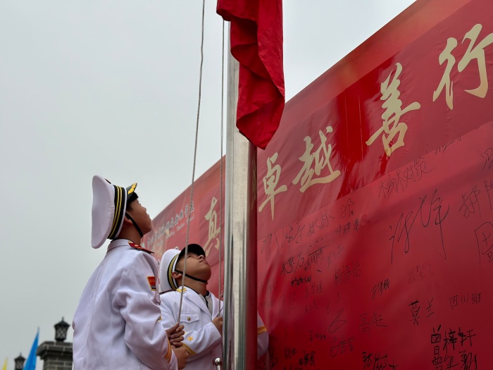 伴隨著莊嚴的國歌聲響起,全場肅立,鮮艷的五星紅旗在全體師生的注目下冉冉升起。全體師生整裝待發(fā)、斗志昂揚,迎接新學期。