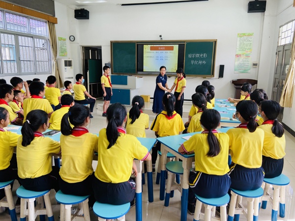曾霞老師以古文入手,在觀賞微電影《濫竽充數》后,讓小演員鄧銳文分享演繹的技巧,學生再嘗試選擇電影的其中一幕演一演,趣味橫生;毛惠敏老師則以電影《老萊娛親》幫助學生更好地了解“孝”文化;黃紅云老師引導學生在電影《入木三分》中尋找王羲之書法達到入木三分的原因,再讓學生演一演,從而感悟王羲之對書法的癡迷;李山老師讓學生了解什么是微電影、什么是鑒賞后,通過演一演去體會曹操一統天下的雄心壯志;巫都老師引導學生充分感知人物形象后,通過趣配音《三顧茅廬》,點亮了學生的高漲興趣;嚴婧老師則引導學生充分調動眼睛、耳朵、心等各種感官去觀賞電影,在把握好人物情緒變化和人物形象特點的前提下,嘗試演一演;黃春萍老師的《花木蘭》微電影鑒賞課中,用啟發式的教學方法引導學生可以從電影中的臺詞、服飾、背景音樂、人物表情、場景等方面對電影進行鑒賞,學生精彩的影評隨之誕生。