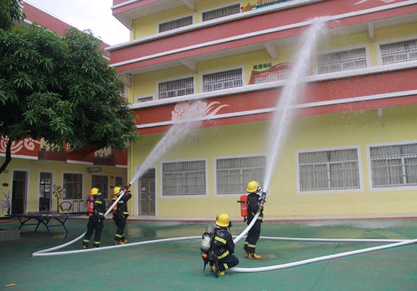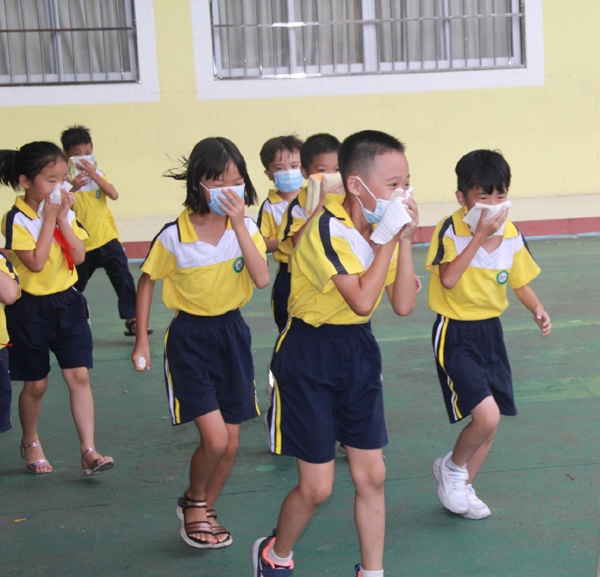隨著警報聲響起,演練正式開始。學生們在教師的指引下用毛巾捂口鼻,緊張有序地逃離“火場”成功疏散到安全地帶。與此同時,消防中隊啟動了消防車,迅速把火撲滅。同學們第一次近距離看消防員演示消防滅火,忍不住發出贊嘆聲。