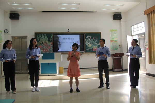 活動現場,教師們以經典為魂,以誦讀為媒,他們精神飽滿,全力以赴,各顯身手,給在場的評委和教師呈現了一場精彩紛呈的視聽盛宴:語文科組以朗誦與吟唱相結合的方式給大家帶來了《一路書香,一生陽光》,時而深情款款,時而慷慨激昂,讓中華經典的千古風韻在教師們心中激蕩;綜合科組獻上朗誦詩篇《我們一定能打贏這場戰“疫”》,用鏗鏘有力的聲音展示戰勝疫情的精神面貌;數學科組的《邊城戰役》向所有為抗疫做出努力和奉獻的人民致敬;英語科組的《天涯何處覓知音》更是美輪美奐地展示了英語老師的朗誦素養,陣陣朗讀,聲聲入情。此外,還有四位年輕新教師的個人朗誦《與你在一起》,飽滿深情,感人心扉,詩與情的高度契合博得了臺下觀眾的陣陣掌聲。