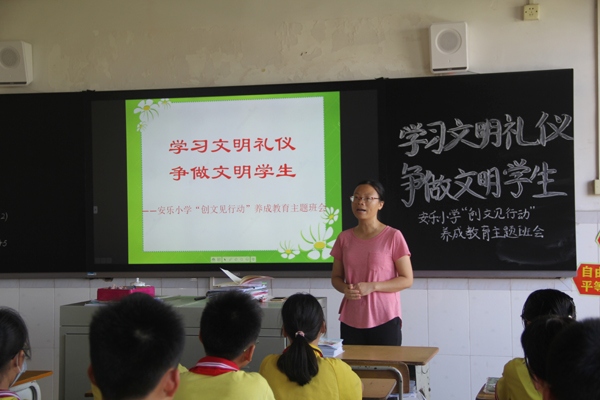 為參與、推動全國文明城市創建工作,切實將各項要求落實到日常工作中,讓城市天天衛生、市民人人文明,安樂小學于7月6日早上開展了“六個一”創文實踐活動啟動儀式和“創文見行動”養成教育主題班會活動。