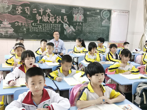 首先,吳秀容校長圍繞黨建引領、課程建設、教學常規、師資培訓等方面的開學工作進行匯報,胡小明督學對安樂小學開學以來各項工作有序推進表示贊賞,并就提升教學質量、優化作業管理、保障課后服務等方面提出了許多建設性意見。接著,胡小明督學實地查看了校園環境,并到班級隨堂聽課,查閱了班級課程表、學生作息時間表和學生晨檢午檢記錄等資料。胡督學還走進教師辦公室,與教師面對面交流,了解教師備課、作業批改等情況,精準指導教師教學工作。